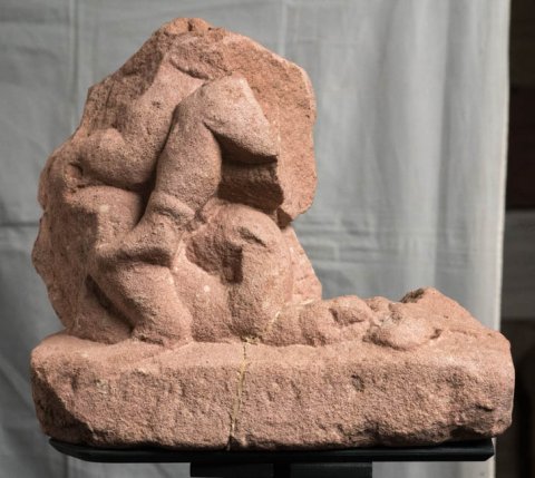 - Beine des Jupiter und Fragment vom Vorderteil des Pferdes sowie Körper und Arme des Giganten erhalten