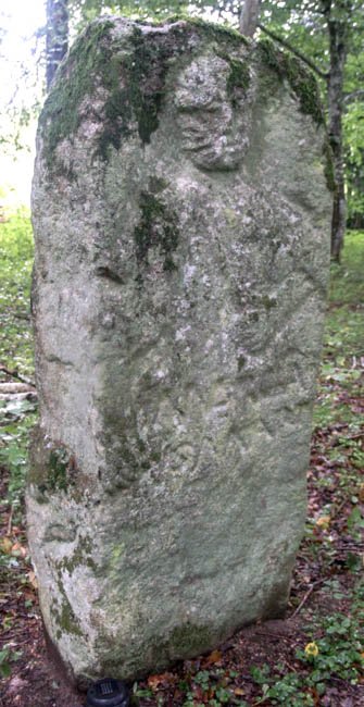 - Stele mit Bogennische, darin Halbfigur eines Mannes mit Stab in der Linken. Darunter Inschrift.