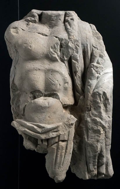 - aus Fragmenten zusammengesetzt, Kopf, rechter Arm, linke Hand u. Beine fehlen