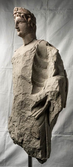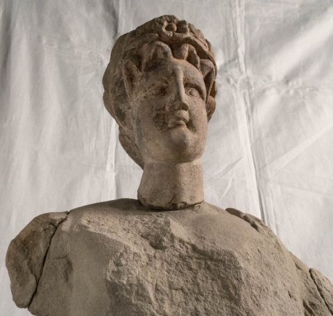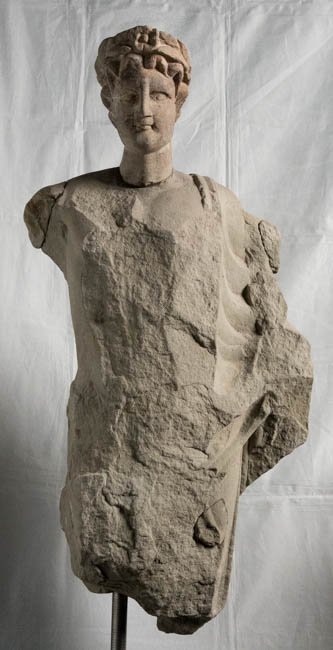 - aus Fragmenten zusammengesetzt, rechter Arm u. Beine fehlen, Vorderseite u. linker Arm mit Füllhorn tlw. abgeschlagen