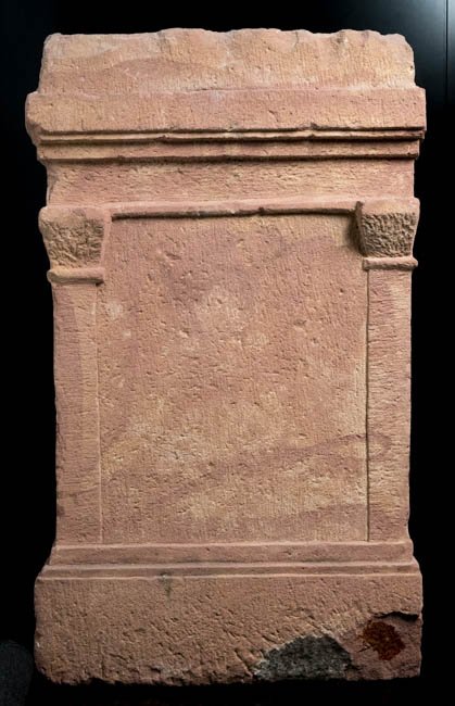 - Altar oder Statuenbasis. An den Ecken glatte Pilaster mit unfertigen Kapitellen.