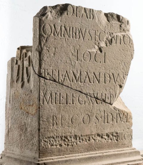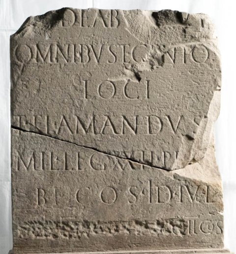 - ----] / [dis] deab[usq(ue)] / omnibus et Genio / loci / T(itus) Fl(avius) Amandus / mil(es) leg(ionis) XXII Pr(imigeniae) [p(iae) f(idelis)] / b(ene)f(iciarius) co(n)s(ularis) Id(ibus) Iul(iis) / [[Geta II et Plautiano]] II con(n)s(ulibus)