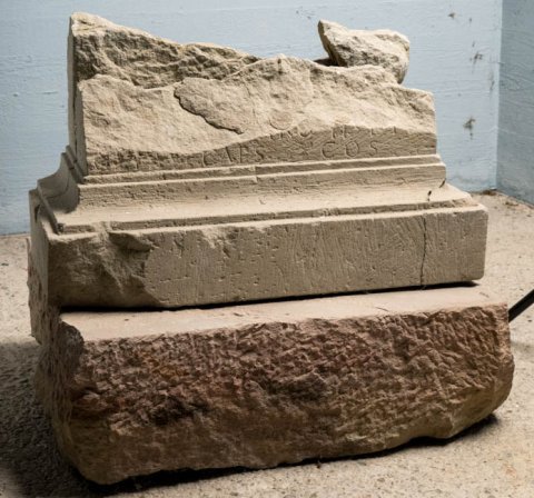 - Auf dem im Museum ausgestellten Altar sind nur Reste der vorletzten und die letzte Zeile erkennbar.