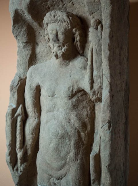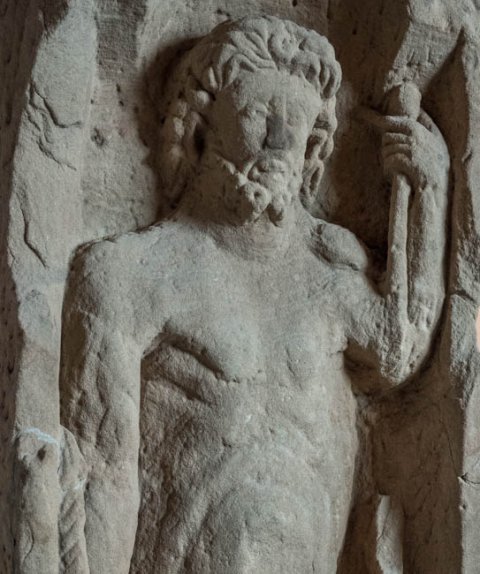 - mythische Figur: in einer Bogennische stehender nackter Jupiter mit Blitz in der Rechten, Szepter in der Linken