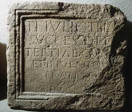 - Ti(berio) Iulio Ti(berii) l(iberto) / Successo et / Tertiae con(iugi) / et Invento / fratri f(ideli?)