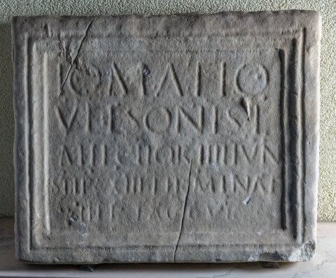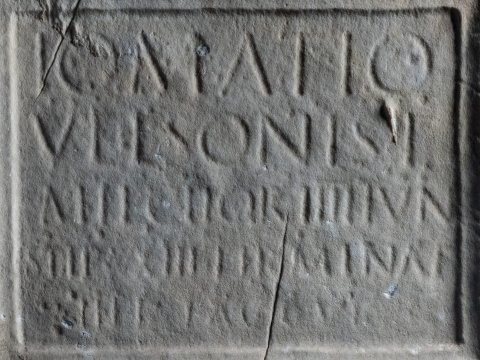 - Iomatio / Velsonis f(ilio) / mil(iti) c(o)hor(tis) IIII Tun(grorum) / stip(endiorum) XXXIII Firminae / f(iliae) a(nnorum) III f(ilii) fac(iendum) cur(averunt)