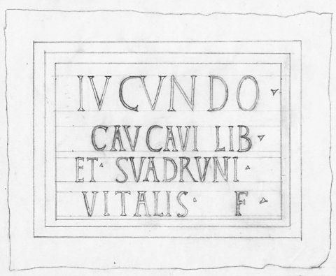- Iucundo / Caucavi lib(erto) / et Suadruni / Vitalis f(iliae)