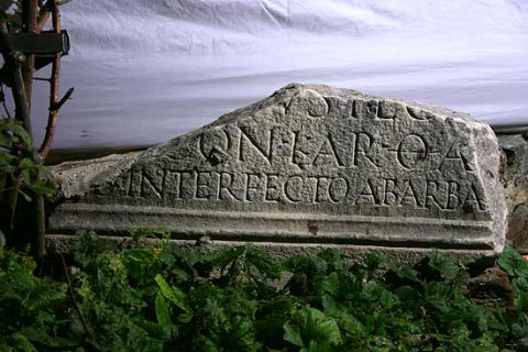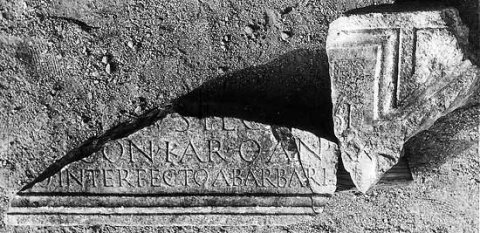 - [------] / [---- si]bi / [----- an(norum) -? ]XX / [----]SELO [-----] / [---] con(iugi) kar(issimo) o(bito) an(norum) [ --- ] / [in bell]o interfecto a barbaris