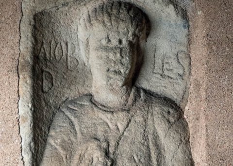 - am Haus "Caves Joyaux" oberhalb des römischen Theaters eingemauert