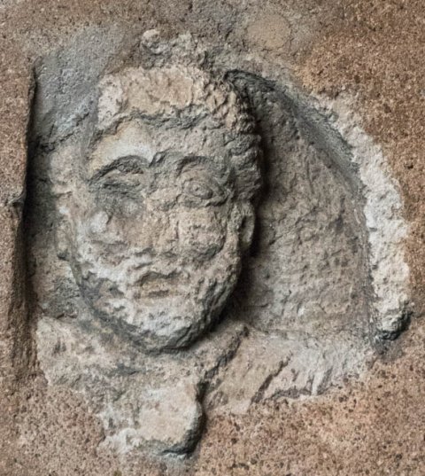 - in Bogennische Kopf und Schultern eines bärtigen Mannes