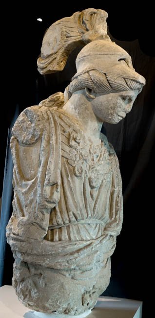 - Mythische Figur: Minerva mit Helm, Mantel, gegürtetem Chiton und Aegis mit Gorgoneion.