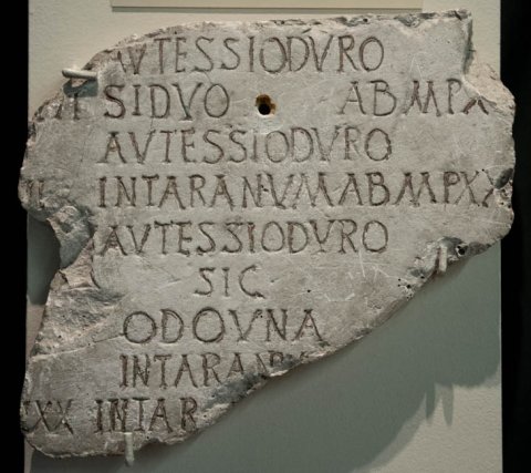 - ---] Autessioduro [---] / [---]vi siduo ab m(ilia) p(assuum) XX[---] / Autessioduro / [---]+I Intaranum ab m(ilia) p(assuum) XX[---] / [---] Autessioduro / SIC / ODOVNA / Intaranum [---] / [---]XX Intar[anum ---] / [--- // ---]V[---] / [Andemantunnum Li]ngonum m(ilia) [p(assuum) ---] / [---]C[---] / [Tullum Leuco]rum V[---] / [Solimaria]ca [---