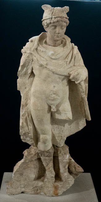 - aus Fragmenten zusammengesetzt, rechter Arm, Mantelränder, Teile der Unterschenkel abgeschlagen