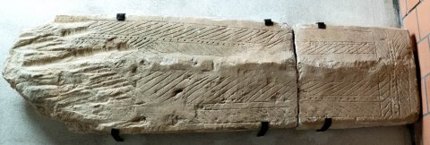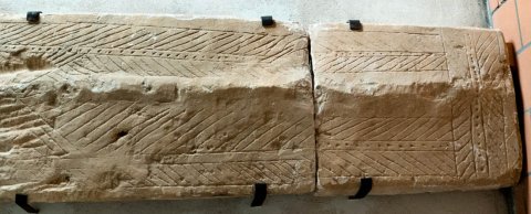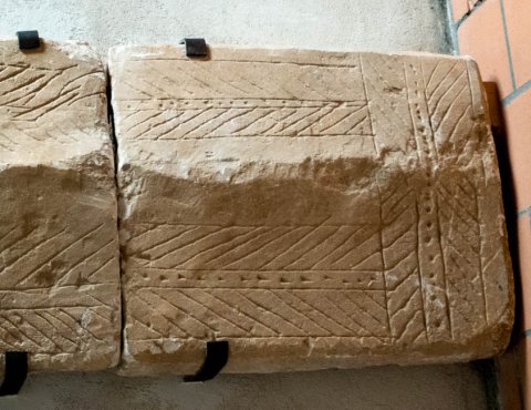 - Ritzdekor: Bänder mit Fischgrätenmuster und Punkten