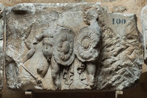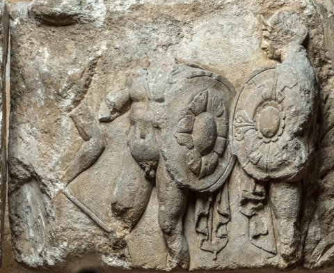 25905 Relieffragment mit Kriegern und Athena