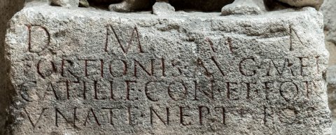 - D(is) M(anibus) m(e)m(oriae) / Fortionis Aug(usti) Mer/catill(a)e con(iugis) et Fort/unatae nepti(s) pos(itum)