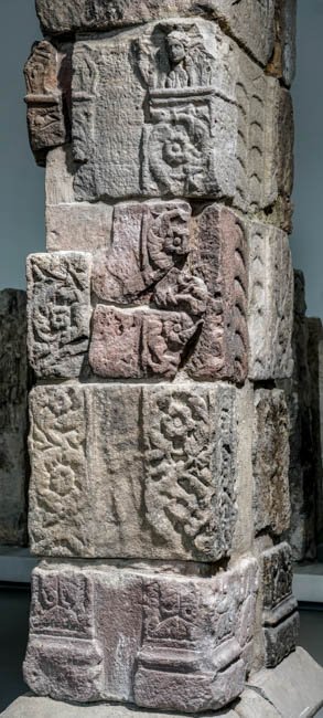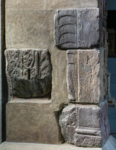 - Aus den erhaltenen 43 Blöcken zusammengesetzt, ergänzt, an den Schmalseiten Ansätze der Portikus.