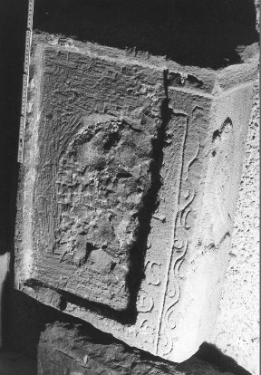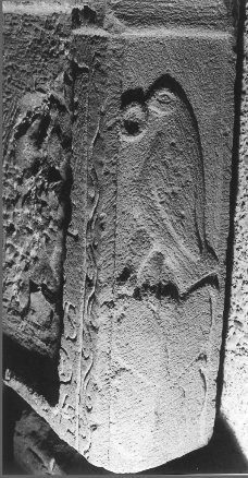- Seitlich des Schriftfeldes geritzte Ranke. Auf der linken Nebenseite Opfergeräte, auf der rechten Adler mit Kranz im Schnabel, sitzt auf Blattornament.