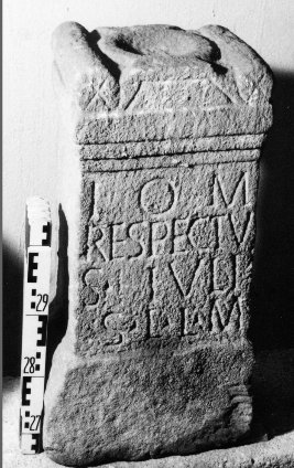 - I(ovi) O(ptimo) M(aximo) / Respectu/s Iuli / s(olvit) l(ibens) l(aetus) m(erito)