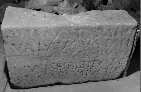 - Val(erio) Casto patri / Val(erio) Augustali / filio Q(uintus) Val(erius) Pruso / vivos(!) sibi et Dome/sticae co(n)iugi (f)ec(it)