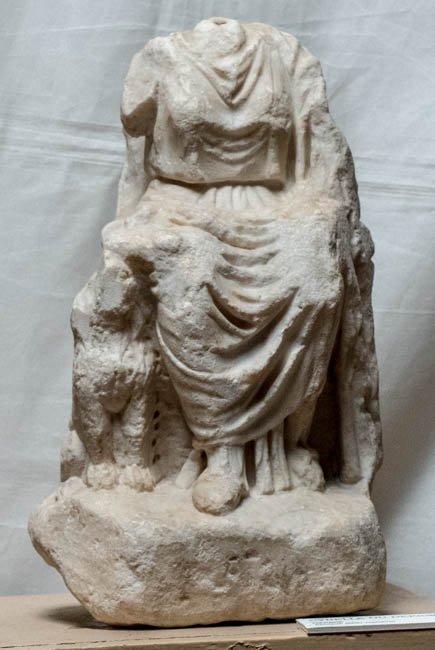 - Mythische Figur: thronende Kybele, an ihrer rechten Seite Löwe.