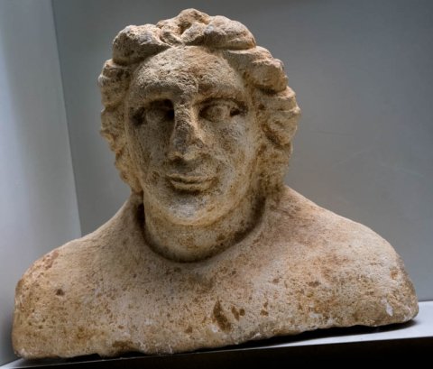 - Votivbüste eines bartlosen Jünglings (Frau ?), bekleidet