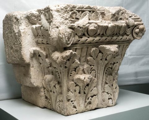 - korinthisches Pilasterkapitell , zwischen den Voluten Flechtband und Eierstab
