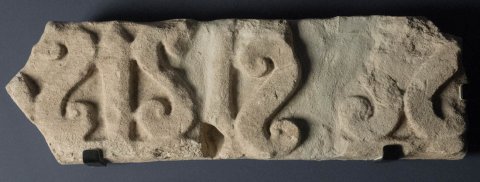 - Reihe von gegenständigen S-Haken, dazwischen lanzettförmige Blätter. Geison eines Grabbaus ?