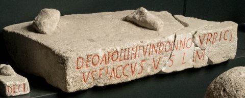 - Deo Apollini Vindon[no] Urbici/us Flaccus v(otum) [s(olvit) l(ibens)] m(erito)