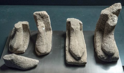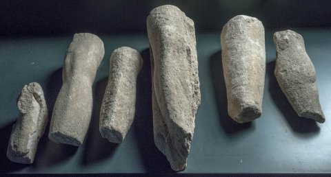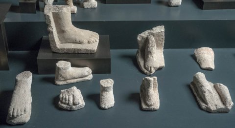 - nackte menschliche Beine mit Füßen, Hochreliefs mit Standleiste