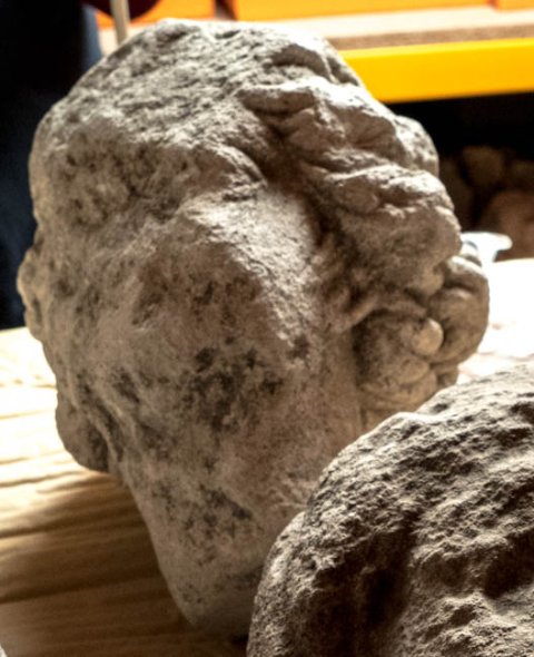 - Kopf einer Frau (Göttin ?) mit im Nacken aufgesteckten Haarflechten
