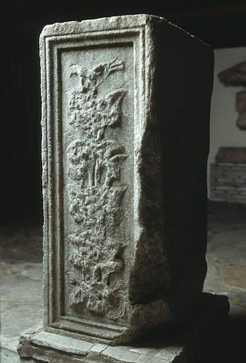 - auf der rechten Nebenseite Gefäß mit Weinstock