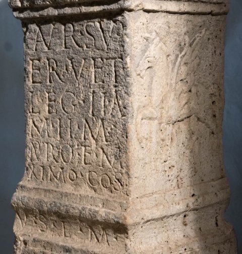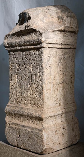 - [------] / Aur(elius) Sup/er vet(eranus) / leg(ionis) II ad(iutricis) / m(issus) h(onesta) m(issione) / Apro et Ma/ximo co(n)s(ulibus) / v(otum) s(olvit) l(ibens) m(erito)
