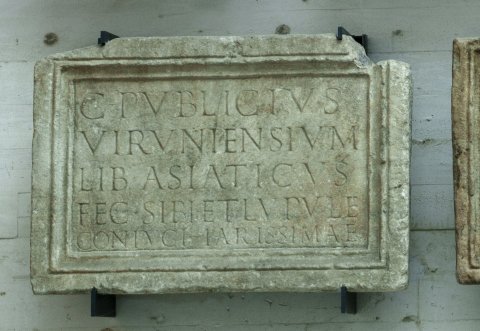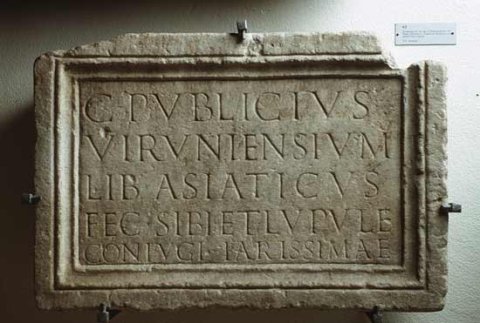 - C(aius) Publicius / Viruniensium / lib(ertus) Asiaticus / fec(it) sibi et Lupul(a)e / coniugi karissimae