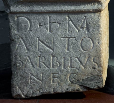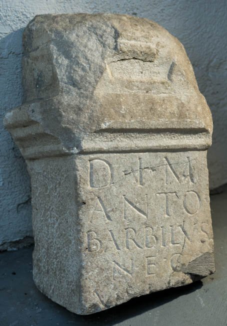 - D(eo) I(nvicto) M(ithrae) / Anto(nius) / Barbilus / neg(otiator) / v(otum) s(olvit) l(ibens) m(erito)