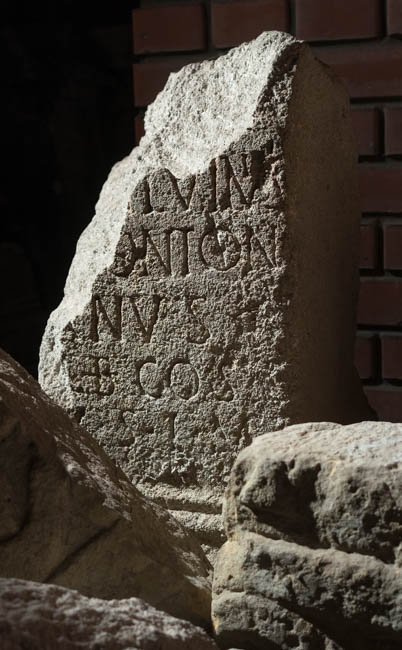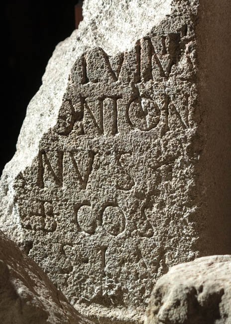 - [I(ovi) O(ptimo)] M(aximo) / T(itus) Calvinius / Frontoni/anus / b(ene)f(iciarius) co(n)s(ularis) / v(otum) s(olvit) l(ibens) m(erito)