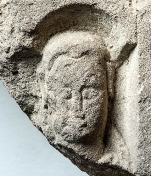 - Stele mit Porträts in mehreren Bogennischen. Erhalten ist der Kopf eines Mannes.