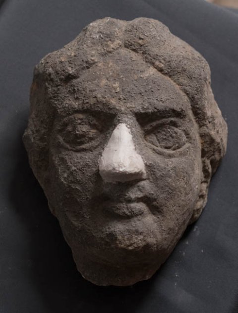 - rundum abgebr., Rückseite abgeschlagen, Nase ergänzt