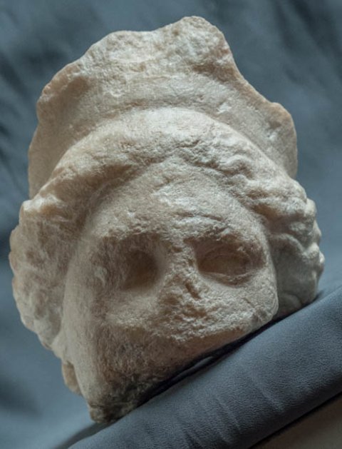 - Mythische Figur: Kopf einer Göttin mit Diadem.