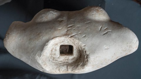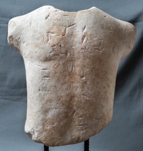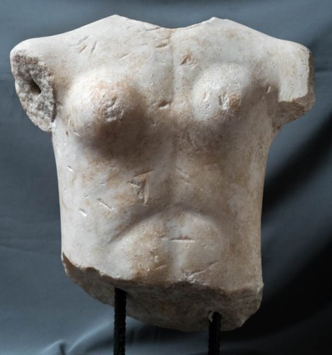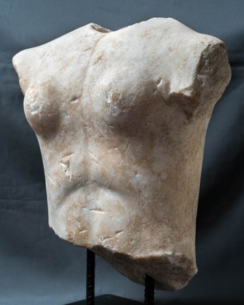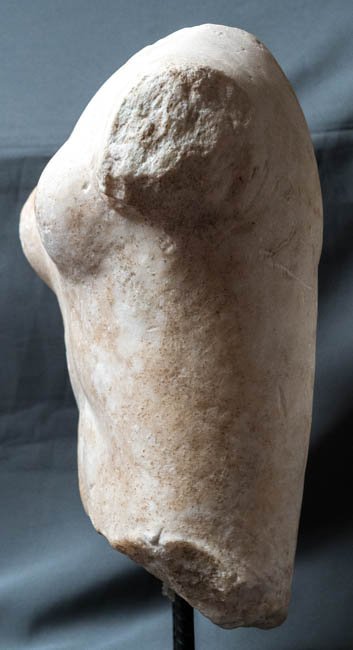- Oberkörper mit Armstümpfen erhalten, im Halsansatz u. im rechten Arm je ein eckiges Dübelloch