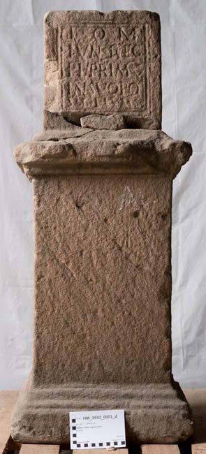 - Altarförmige Basis ohne Reliefdekor, darauf kubischer Block mit Inschrift.