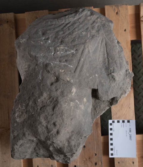 - Torso mit Teil des linken Armes, stark verwittert