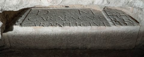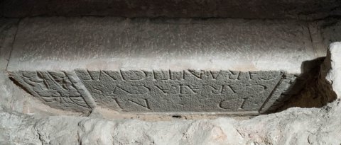 - im Dom in situ, sichtbar in der Krypta seitlich des linken Treppenaufgangs zur Kaisergruft, liegend mit Schriftseite nach unten verbaut
