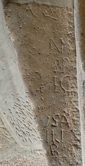 - im Dom, als Treppenstufe im NW-Turm (56. Stufe von unten)