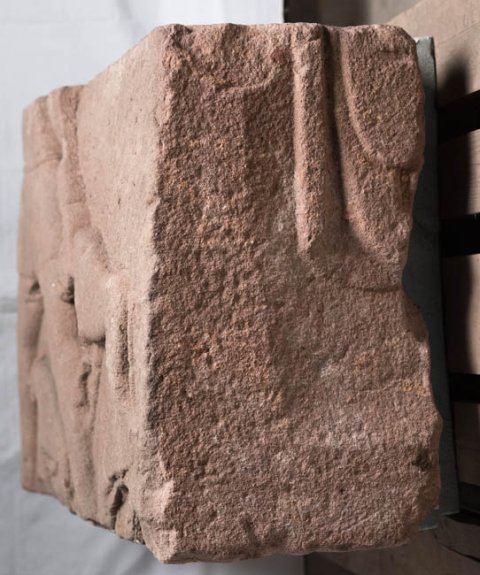 - Eckblock: auf der Vorderseite (?) Mythos. Laufender Aktaion, über den Hunde herfallen; auf der rechts anschließenden Seite Reste von Mantelfalten von einer stehenden Figur (?).