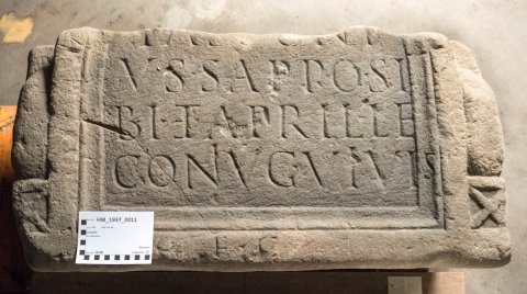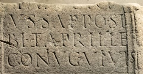 - [D(is) M(anibus)] / T(itus) Assoni/us Sappo si/bi et Aprill(a)e / coniug(i) vivis / f(aciendum) c(uravit)