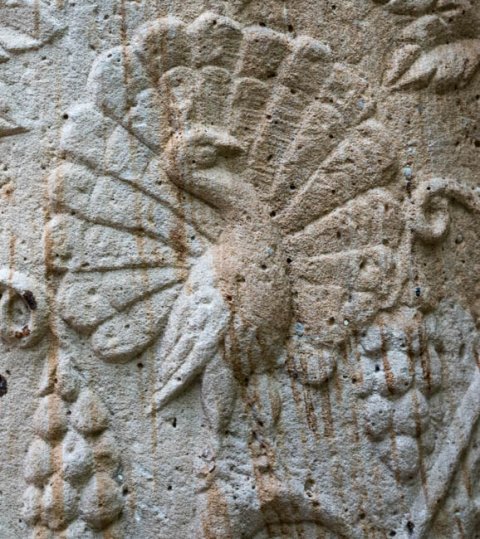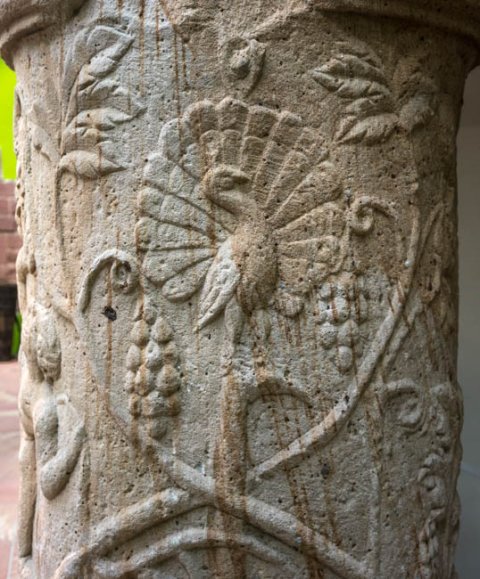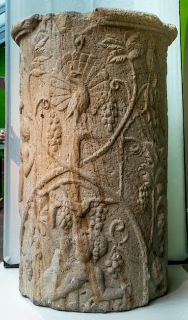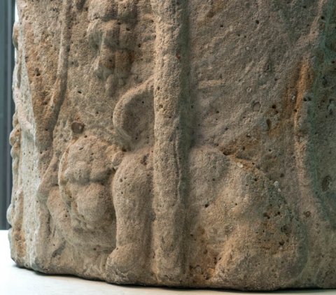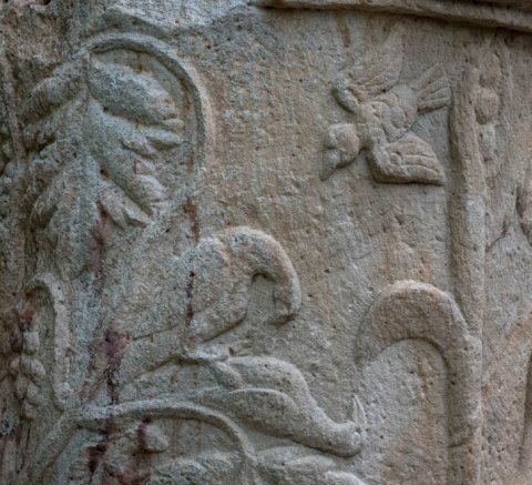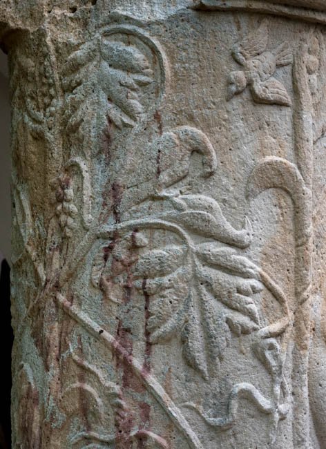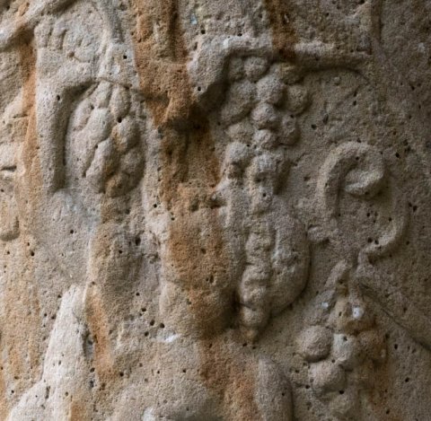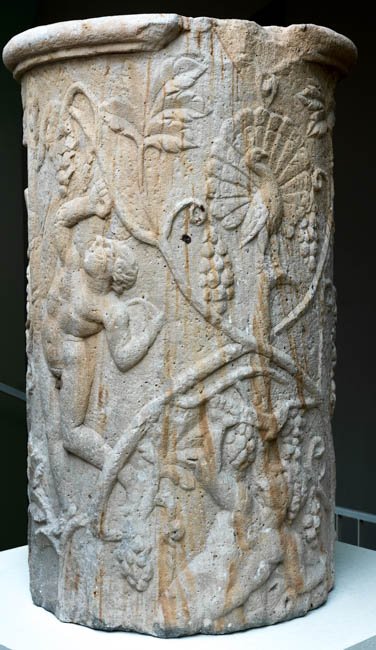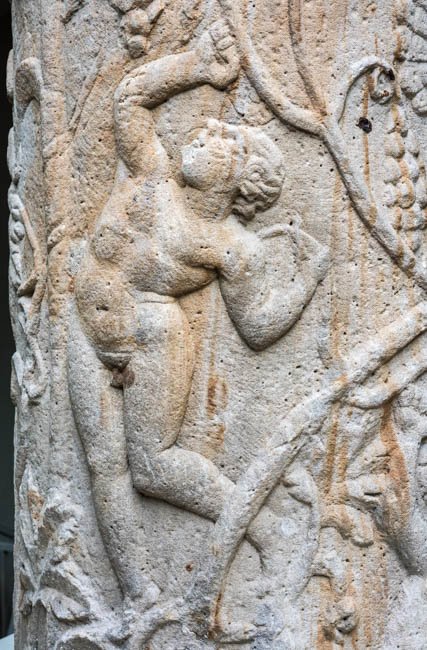 - Auf dem Säulenschaft Weinranken mit Vögeln (Pfau, Käuzchen) und weinlesenden Knaben und Eroten. Schaft einer Jupitersäule ?