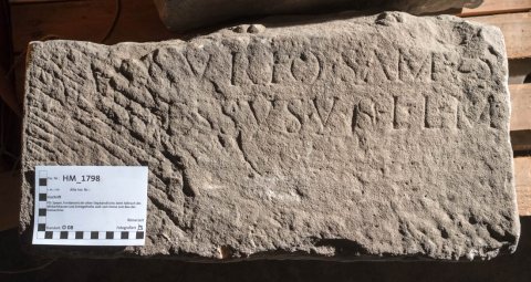 - oben abgebr., Inschrift tlw. abgemeißelt