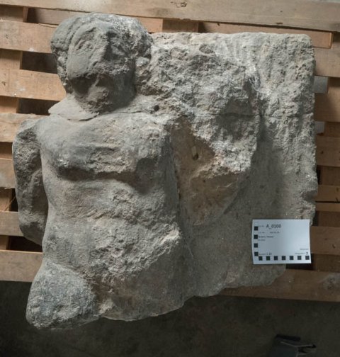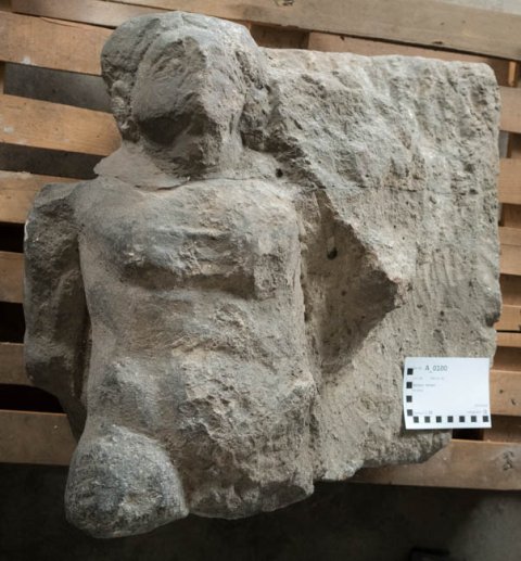 - Mythische Figur: nackte männliche Figur, die etwas auf der linken Schulter trägt. Aeneas mit Anchises ?