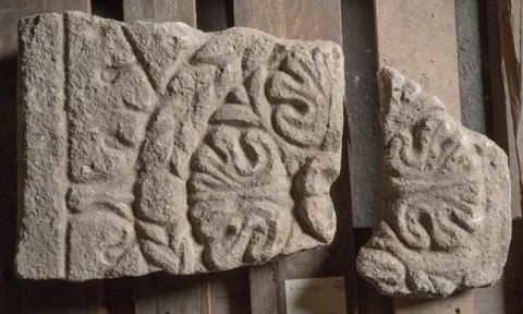 26649 Relieffragmente mit Kranz und Blattdekor